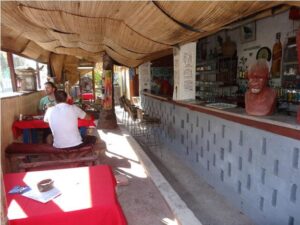 Last night’s social activity added some credence to this summary above. John, a born and bred Mozambican of Portuguese descent, owns a local tavern here. Had not made it up his way but heard Mike speak about him. We took a look see up that way for supper taking a leisurely walk along the way past the produce stands, past the small eatery that has served me a king mackerel steak, rice and salad for $5 the last few days, past the local French restaurant and past Tofo Tofo, the eatery started by Ness, one of 2 Serbians in town.