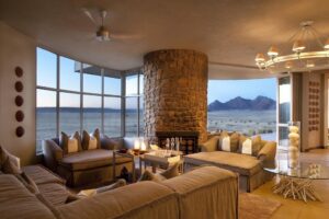 Cradled against ancient mountains, the ten stone and glass desert villas of andBeyond Sossusvlei Desert Lodge blend the grandeur and solitude of the Namib with sophisticated elegance and comfort. Massive windows open up onto the endless vistas, framed in the background by the ever-changing colours of the dunes. The stars shine directly on your bed through a glazed skylight. Precious water from an underground spring feeds the refreshing lodge pool, while wildlife gathers at a nearby waterhole. Dune dinners in dramatic desert locations reveal the wonders of the open spaces, and the mysteries of the star strewn skies are unlocked by a resident astronomer.