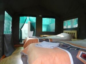 Dzalanyama Forest House has 4 bedrooms, 2 en-suite tented chalets, a large lounge / dining area with a fireplace and there is a gas freezer / fridge. The front deck is the perfect place to enjoy al fresco lunches and appreciate the serenity of the area. Lighting is provided by gas lamps and solar lamps. The Lodge is self catering and guests are required to provide their own food supplies, which will be prepared by the resident cook.