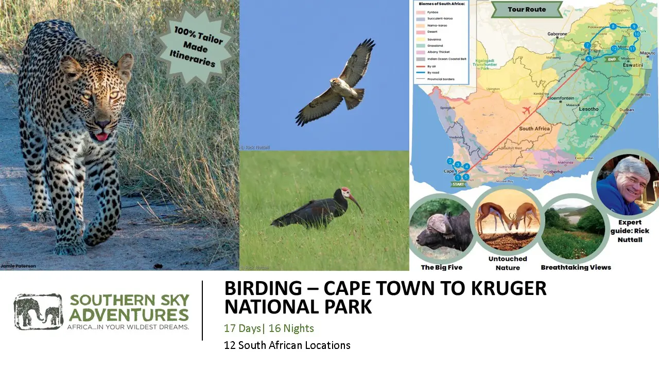 These birding tours truly capture the essence of the passion we at Southern Sky Adventures and Rick share for nature. Our tours cover the most important birding locations and a few hidden gems in South Africa. We focus on endemic birds as well as special birds you might find in each area.