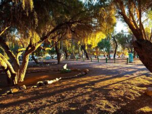 Hobas Camp is the campsite at the start of the hiking trail at the north end of the Fish River Canyon. The camping site at Hobas is one of the few in the area offering shady trees to camp amongst. There are 14 campsites set among shady trees at the top end of Fish River Canyon. Campsite amenities include ablution facilities, braai/BBQ area, swimming pool and a kiosk selling basics and cool drinks.