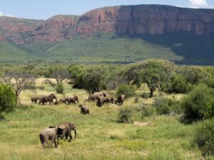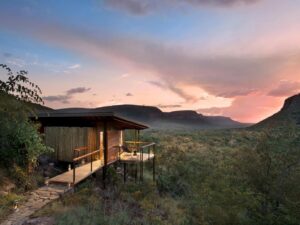 We could not wait to explore, and set out on foot to discover the many animal-worn paths that crisscross the reserve. Our journey took a number of days, but left a permanent impression on our souls. We found the perfect place perched on the side of the mountain, with views all the way into Waterfall Valley. Utterly remote, in a wilderness world of its own. This was simply too good to keep to ourselves. And so the Marataba Walking Trails Lodge was born….The lodge is cleverly situated on the hillside at the bottom of Waterfall Valley. It is surrounded by mountain streams, the source of the Matlabas River (which flows into the mighty Limpopo River, and eventually into the Indian Ocean).The area surrounding the lodge has sweet savannah grasslands in the valley below, and broadleaved sour veld habitat on the hills above, while some of the gorges are filled with riverine forest habitats.All units have spectacular views down into Waterfall Valley, which is particularly magical at sunset!