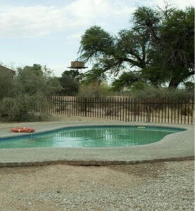 The stark, beautiful Kgalagadi Transfrontier Park offers three camps, one of which is Mata Mata on the banks of the Auob River. Surrounded by Kalahari dune bushveld, the camp has a reception, shop and fuel facilities. Also at the camp is a hide overlooking a water hole, attracting various animals of the Kgalagadi. Expect to see many a giraffe here.