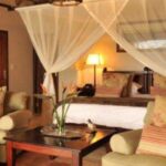 Four Luxury Suites under canvas nestle amid beautiful indigeneous trees that attract a variety of birds. They have the same facilities as the larger suites in a more compact space and are furnished and decorated to the same superb standard. The bedrooms have draped ceilings creating an atmosphere of romance and intimacy. Tented roofs blend into the African bush while solid walls provide quiet and security, ensuring a restful night’s sleep.